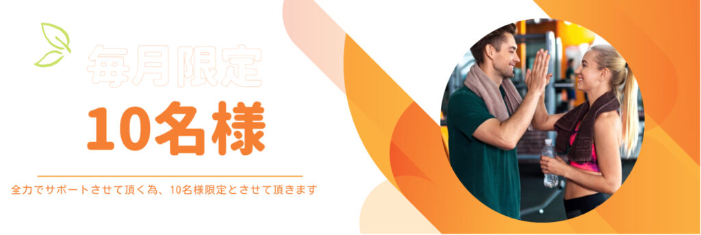 ダイエットに成功して人生を変える経験をして頂きたいと本気で思っている情熱男。1人1人に本気で寄り添ってサポートするのでお客様は毎月10名まで。その熱い気持ちがお客様のモチベーションをあげてくれます。